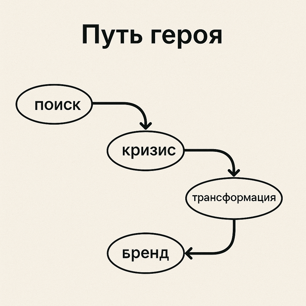 · она разворачивается по структуре мифа или пути героя: боль — поиск — кризис — трансформация — новый уровень;