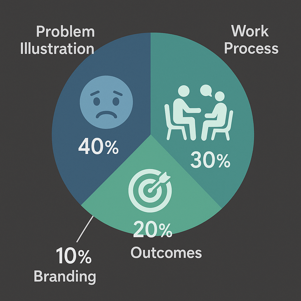 ● 40% визуализация проблем и симптомов (привлекает внимание)