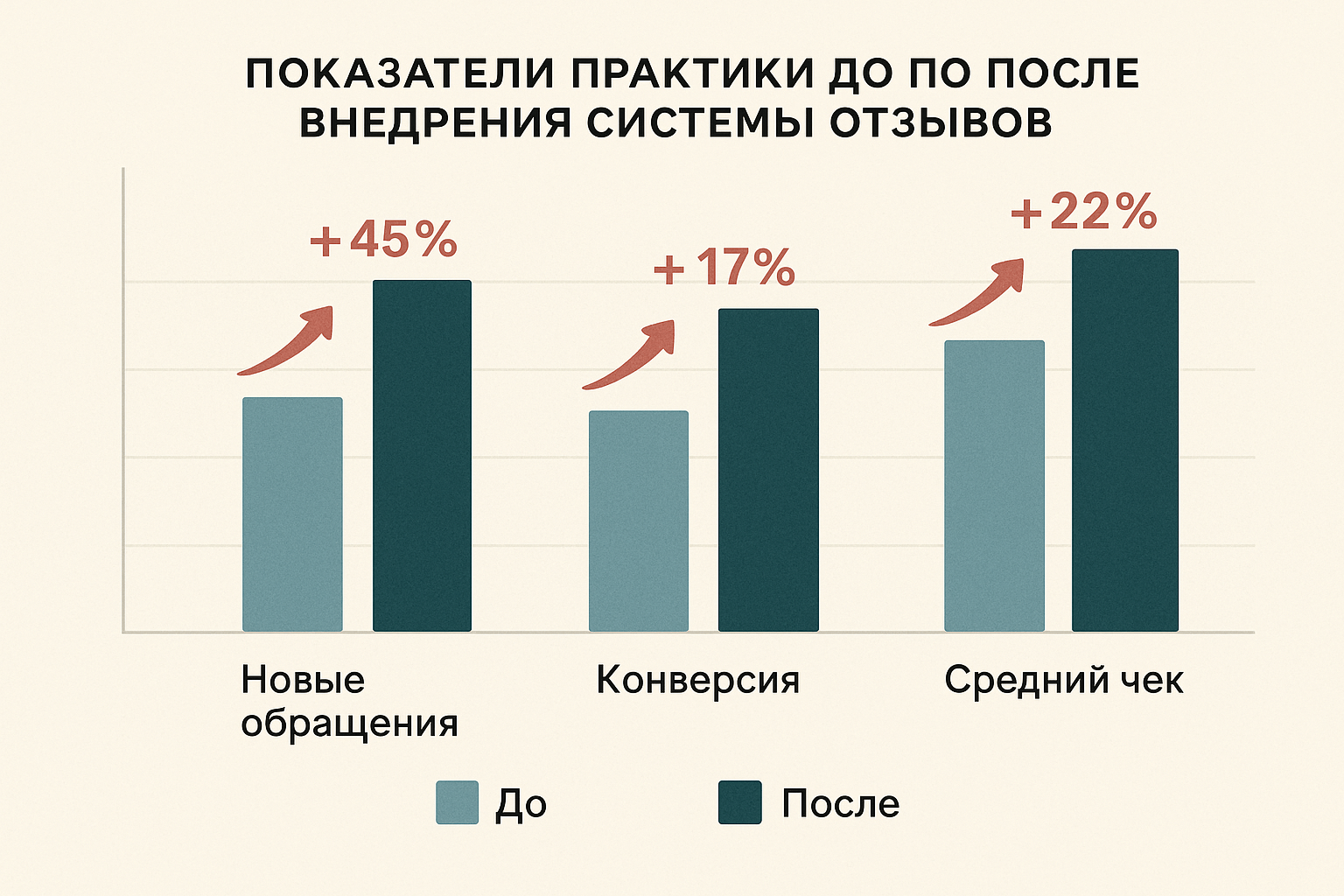 Психологи, внедрившие комплексный подход к работе с отзывами, фиксируют следующие показатели роста: