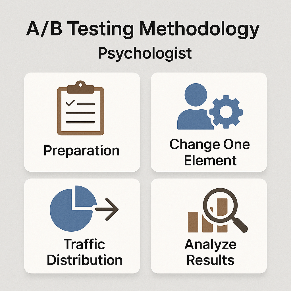 Анализ успешных практик показывает, что эффективное A/B тестирование для психолога включает 4 ключевых этапа: