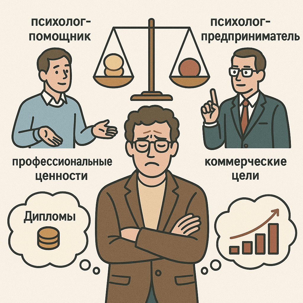 Многие психологи выбрали профессию из-за желания помогать людям, а не зарабатывать на их проблемах. Исследования показывают, что 71% специалистов испытывают внутренний конфликт между коммерческими целями и профессиональной этикой.