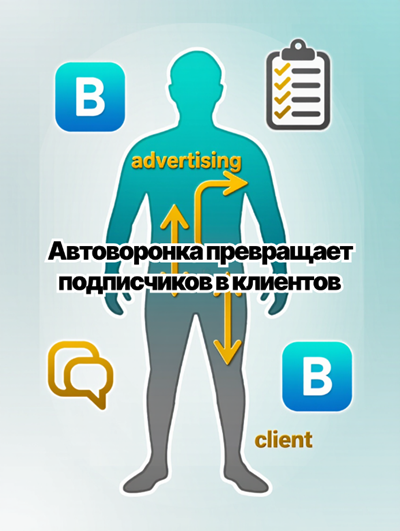 Обычный пост даёт всплеск интереса и тут же «сгорает» в ленте. Автоворонка ВКонтакте работает постоянно: человек видит рекламу, получает лид-магнит, подписывается и дальше проходит цепочку касаний.