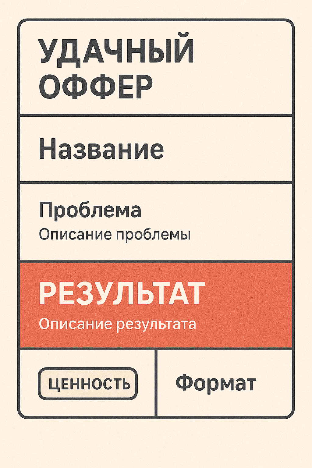 ● Формулировка позиционирования по формуле "Я помогаю (кому) с (какой проблемой) через (какой метод/подход), что приводит к (конкретный результат)"