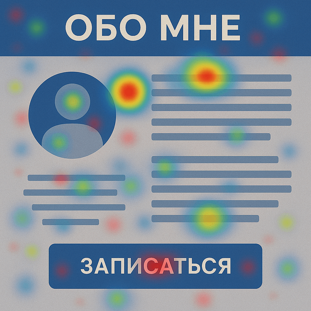 ● Карта кликов для страницы "Обо мне" (выявляет точки интереса и недоверия)